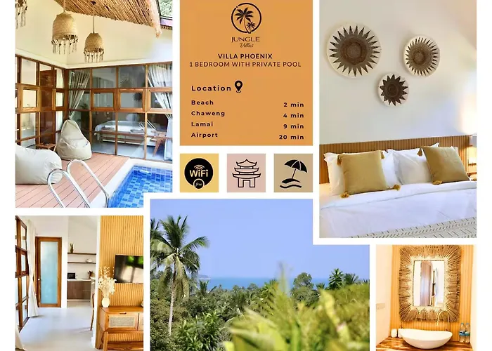 Villa The Phenix, som ligger 5 minuter till fots från Jungle Club Samui, har biluthyrning. Villan med 1 sovrum och 1 badrum, som ligger ungefär 15 minuters bilfärd från Samuis krokodilfarm, har en terrass med utsikt över trädgården.